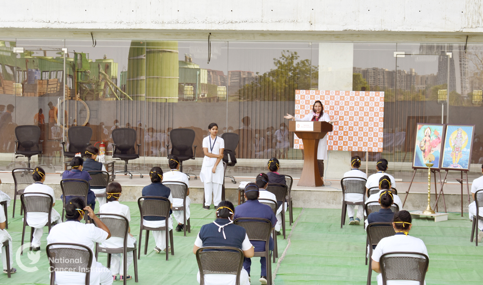 National Cancer Institute, celebrated the Nurses Day on 13th May to appreciate the work that Nursing staff is doing in these testing times of COVID -19 pandemic. It was carried out observing all the precautionary norms for COVID-19. Training was given to the Nursing staff by Dr. Sonali Chaudhary on Donning and Doffing of the PPEs provided to the nurses for their safety. The doctors wrote words of appreciation and motivational words for the Nurses. They were addressed and motivated by Dr Anand Pathak, Medical Director and Shri Shailesh Joglekar, CEO and General Secretary on the occassion. Blood Donation Drive is organised every year to commemorate Nurses Day and this year too it was organised in association with Dr Hedgewar Blood Bank taking all precautions against COVID - 19. There was a huge turnout and a larger number of staff turned out to donate blood in these times of need.